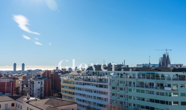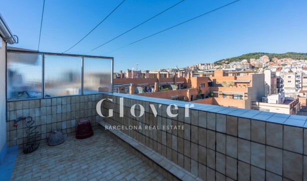 Fantàstic àtic amb terrassa de 76m2 construïts en el barri de la Sagrada Família a refrmar. Lluminós saló menjador amb accés a una assolellada terrassa d''amb vista a la mar i a la Sagrada Família. Cuina semi oberta. Consta de 3 habitacions, 2 habitacions