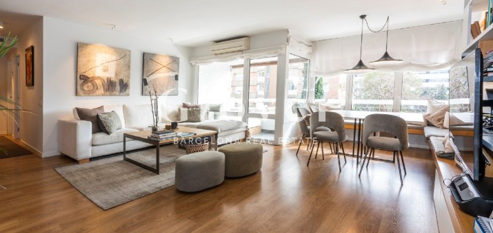 We are pleased to present this beautiful and bright apartment of 146 m2 built and 118.05 m2 useful located in one of the best areas of Les Corts. The apartment was recently renovated and we highlight the taste and elegance of the reform. RENTED WITHOUT FURNITURE. Open kitchen, nice living room with access to a sunny and pleasant terrace of 5 m2. It has 3 bedrooms and 2 bathrooms, 2 of the rooms are doubles and the current suite occupies a double room and an old room, which has allowed it to have a spacious dressing room.
