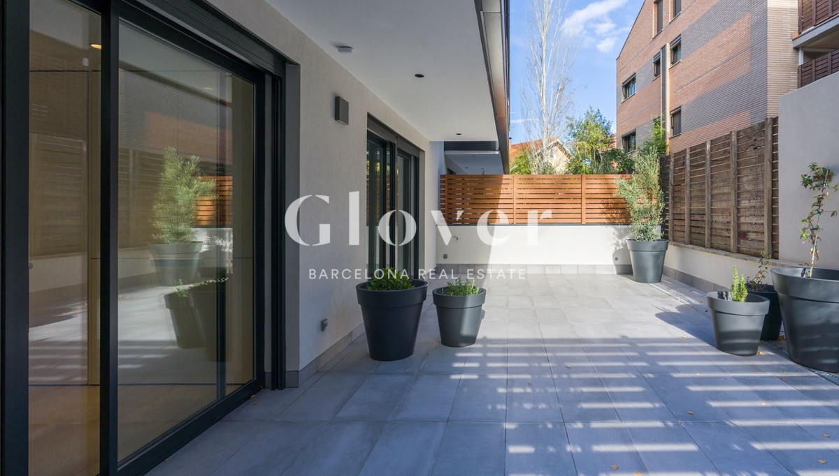 Brand new ground floor apartment in a new construction building, very bright duplex with exterior views from all rooms. All of them directly linked to the covered terrace. On the ground floor there is a very spacious living-dining room of approximately 34 m² with a separate kitchen and an area for a washing machine and dryer. 1 courtesy toilet. Access by stairs to the upper floor where it consists of 3 bedrooms with fitted wardrobes: a suite with bathroom and two double rooms separated by a sliding door that has the possibility of becoming a large room and study with a full bathroom to share . In total it has a useful area, without common areas, of 96m² with a covered terrace of 10.46 m² and 55 m² for private use with Italian resin pots with plugs and water connection. Top-of-the-range Siemens finishes, silestone and all kinds of details, tilt-and-turn aluminum enclosures, GradHermetic electric blinds and ceramic flooring imitating wood. In humid areas the pavement is made of polished cement. Radial heating and ducted air conditioning. Support for sanitary hot water and heating from solar panels on the community roof, which allows significant energy savings. A quality of life proposal that includes a communal area with a private area with Mediterranean plants, jasmine,ugenias, lavender, gardenias and a 30m2 saline pool for the enjoyment of the whole family. Each house has 2 parking spaces with pre-installation made for electric car charger and 1 storage room included in the price. Just 2 minutes walk from the Catalan Railways station and the center of Sant Cugat and all its shops. 15 min by car from Barcelona. e