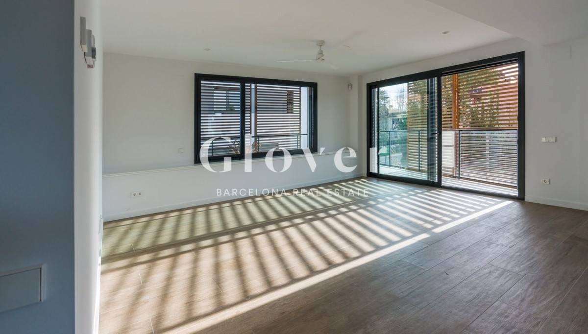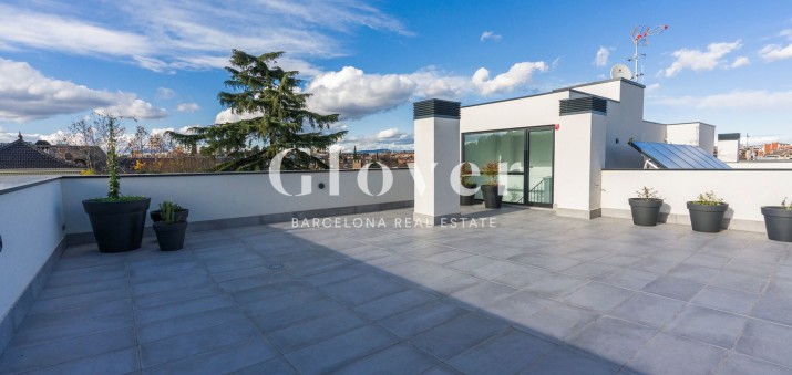 Apartment on the second floor, brand new in a new building, spacious and very bright with exterior views from all its rooms. All of them directly linked to the covered terrace and with direct access to the terrace for private use on the roof. The kitchen is open to the living room with the possibility of being independent with a sliding glass door. Separate laundry area with sink and pre-installation for washing machine and dryer. It consists of three bedrooms with fitted wardrobes and dressed inside: a suite with a bathroom and two double bedrooms with a full bathroom to share with a large closet for bedding and a very large rain shower. In total it has a useful area, without common areas, of 116 m² with a covered terrace of 31 m² and 69 m² for private use on the roof with access from inside the house with Italian resin pots with plugs and water connection. Top-of-the-range Siemens finishes, silestone and all kinds of details, tilt-and-turn aluminum enclosures Cortizo GradHermetic electric blinds and ceramic flooring imitating wood. In humid areas the pavement is made of polished cement. Radial heating and ducted air conditioning. Support for hot water from solar panels on the community roof, which allows significant energy savings. A quality of life proposal that includes a communal area with a private area with Mediterranean plants, jasmine, eugenics, lavender, gardenias and a 30 m² saline pool for the enjoyment of the whole family. Each house also has 2 parking spaces with pre-installation made for the electric car charger and 1 storage room included in the price. Just 2 min walk from the Catalan Railways station and the center of Sant Cugat and all its shops. 15 min by car from Barcelona.